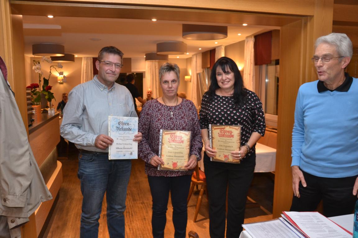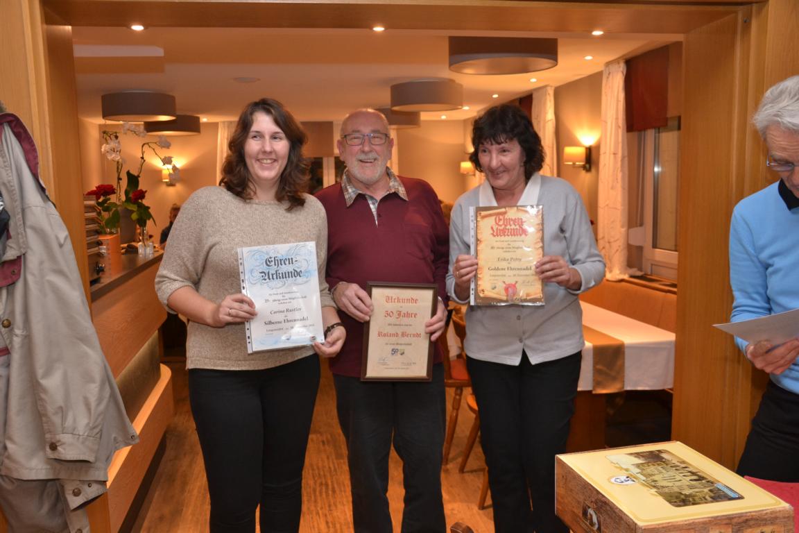 Micheal Scheuerling (25 Jahre Mitglied), Beate Scheuerling und Elke Diefenbach (40 Jahre Mitglied) v. l.
