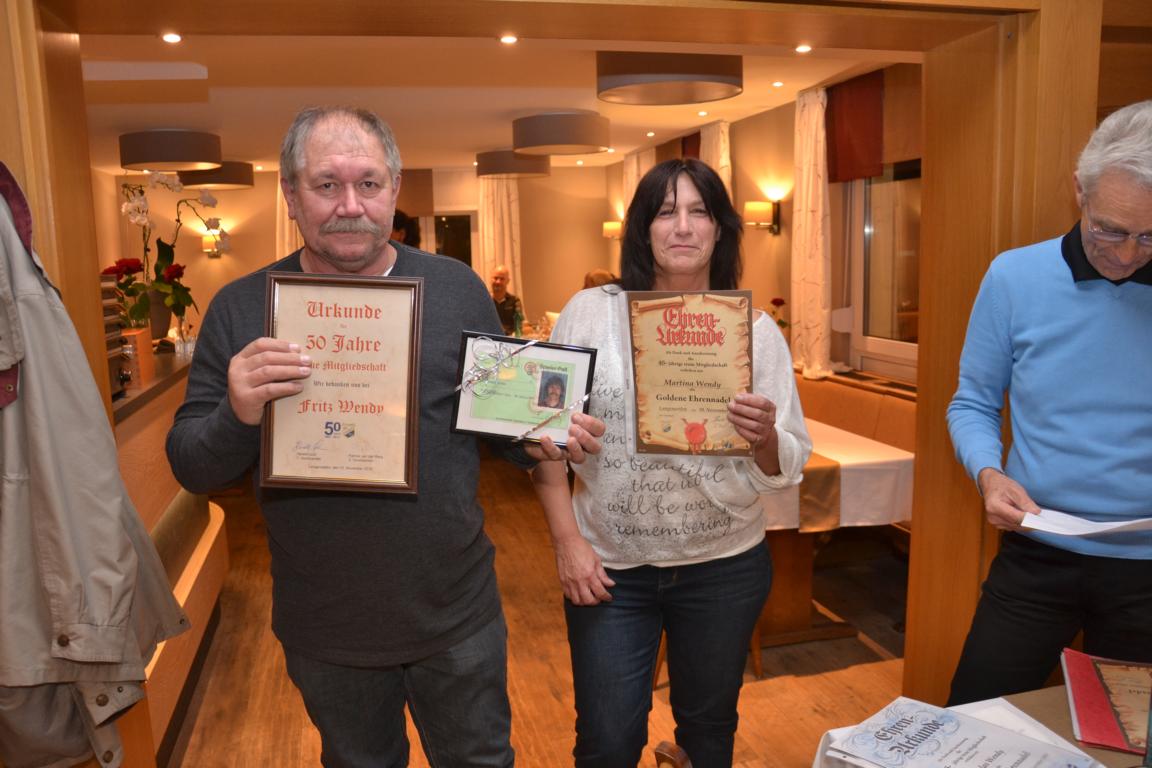 Fritz Wendy (50 Jahre Mitglied) und Martina Wendy (40 Jahre Mitglied) v. l.