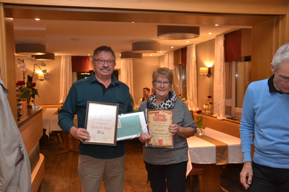 Manfred Ebert (50 Jahre Mitglied) und Christa Ebert (40 Jahre Mitglied) v. l.
